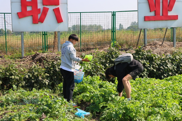活动前,电子工程系进行了细致的筹备工作,地址选在学校的劳动实践教育基地。正午时分,烈日当空,阳光洒在肥沃的土地上,微风轻拂,带来阵阵泥土的芬芳。学生们怀着兴奋与期待的心情来到活动现场,在老师的带领下,有序地进入各自的劳动区域:韭菜片区、萝卜片区、毛豆片区和白菜片区。