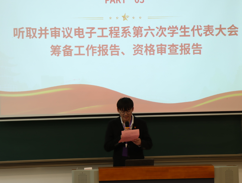 会议伊始,大会筹备委员会成员王梓恒作了《第六次学生代表大会筹备工作报告》及《代表资格审查报告》,详细汇报了大会的筹备情况,确保了大会的顺利进行。紧接着,第十九届系学生会主席洪苏姗代表学生会作工作报告,全面回顾了过去一年学生会在思想引领、活动组织、志愿服务等方面取得的显著成绩,并对未来学生会的发展提出了前瞻性的建议。与会代表审议并通过了以上报告。