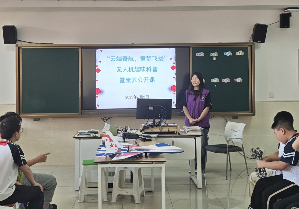 活动伊始,志愿者们以精心制作的科普视频作为开场,直观展现无人机在航拍测绘、农业植保、应急救援等领域的广泛应用,瞬间吸引了小学生们的目光。随后,志愿者们化身“小老师”,用通俗易懂的语言,结合图文并茂的PPT,从无人机的基本构造、飞行原理,到操作技巧与安全规范,进行了深入浅出的讲解。