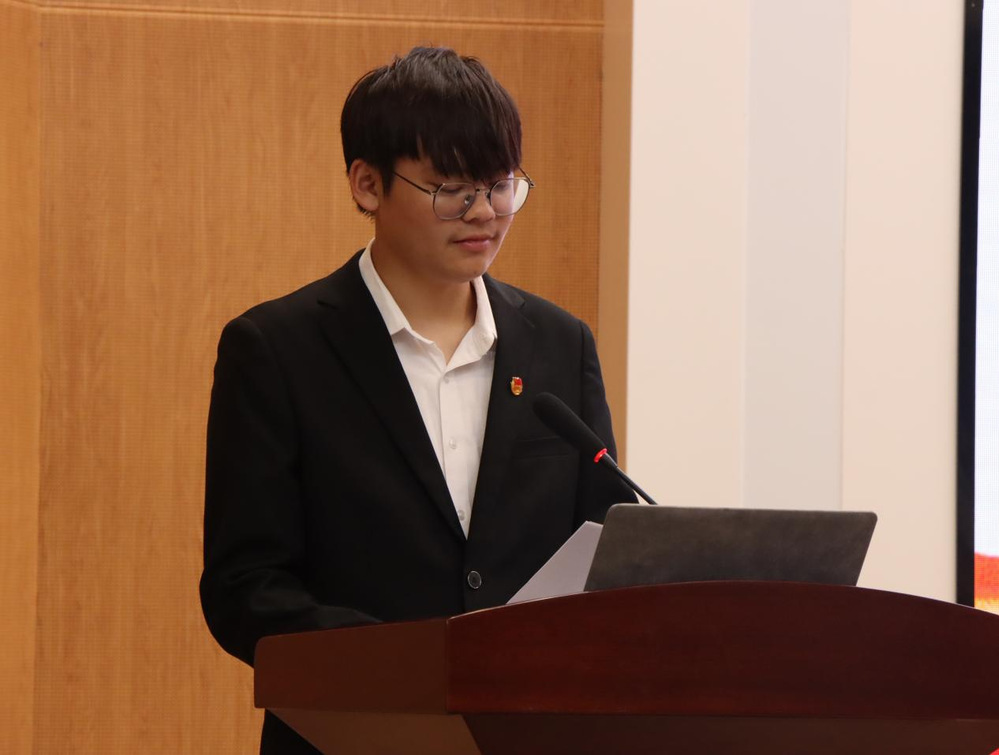 会议伊始,2023级学生干部代表、电子工程系团委副书记柏晋峰上台发言,他回顾了过去一年学生组织的工作成果,分享了宝贵的工作经验,并鼓励新一届学生干部要勇于担当,积极进取。