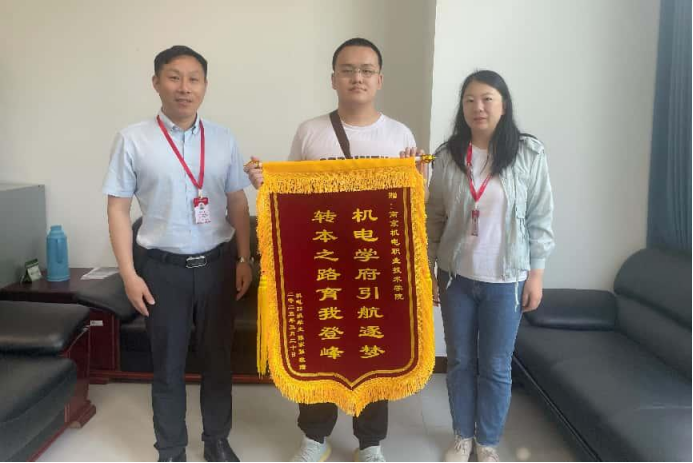分享会尾声,陈家强同学怀着感恩之情,向母校星空体育·(中国)官方网站赠送锦旗,锦旗上“机电学府引航逐梦,转本之路育我登峰” 的字样熠熠生辉,饱含着他对母校培育之恩的深切感激。培训处处长周云龙、信息工程系党支部副书记陈雪作为校方代表郑重接受锦旗。周云龙处长表示,这面锦旗不仅是对学校教育教学工作的肯定,更是一种激励,学校将继续努力,为学生成长成才搭建更好的平台。陈雪副书记也鼓励在场同学以陈家强为榜样,明确目标,努力拼搏,在专转本和未来的职业发展道路上实现自己的理想。