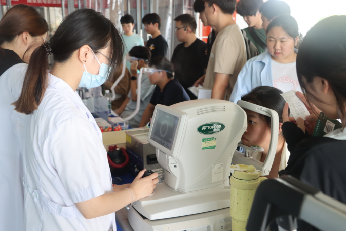 活动现场,南京爱尔古柏医院的专业医疗团队为师生带来全方位的眼科健康服务。义诊区域内,眼科医生们借助先进的检查设备,为师生们进行视力检测、眼底检查等多项眼科检查,耐心解答大家关于近视防控、眼部疾病预防等方面的疑问,并给予个性化的护眼建议。眼镜清洗服务点前,师生们有序排队,将自己的眼镜交给工作人员。专业的清洗设备配合细致的操作,让眼镜焕然一新。干眼雾化体验区更是备受欢迎,不少长期使用电子设备、眼睛容易疲劳干涩的师生,通过雾化治疗,缓解了眼部不适,直呼“眼睛清爽多了”。