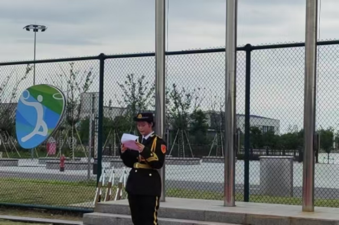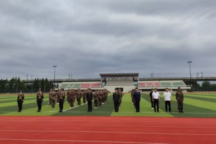 庄严肃穆启新篇,仪式感中显担当。仪式在协会成员整齐划一的入场中开启,随着《中华人民共和国国歌》的激昂旋律响起,全体人员肃立致敬,鲜艳的五星红旗冉冉升起。随后,全体队员进行队列展示——标准的军姿、整齐的步伐、刚劲的转体,每一个动作都彰显着国防教育协会平日里严苛训练的成果,展现出 纪律严明、作风优良的精神风貌。