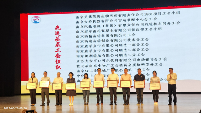 5月20日上午,新工集团工会组织召开了主题为“砥砺奋进十年路,同心喜迎二十大”的表彰活动。学校工会荣获2021年度“先进基层工会组织”荣誉称号;学校蓝岛创客中心王国珍主任的《自动化高效清洁机》项目荣获2021年新工集团职工百项“五小”竞赛创新成果优秀奖;我校毕业生吕明(现任职南京汽轮电机(集团)有限责任公司)荣获“南京市五一劳动奖章”。