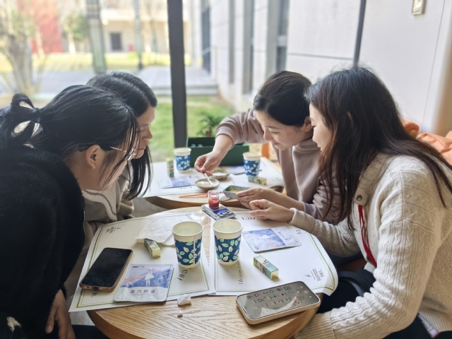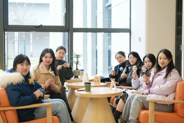 组织女教职工们开展系列创意手作活动:在宿舍区制作漆扇,感受传统文化的魅力;在教工食堂制作手工花,领悟传统工艺的匠心之美;在蓝岛书院学习非遗缠花,体会“慢工出细活”的匠人精神;在“一站式”学生社区描绘金箔画,感受“薄如蝉翼、轻似鸿毛”的东方美学。