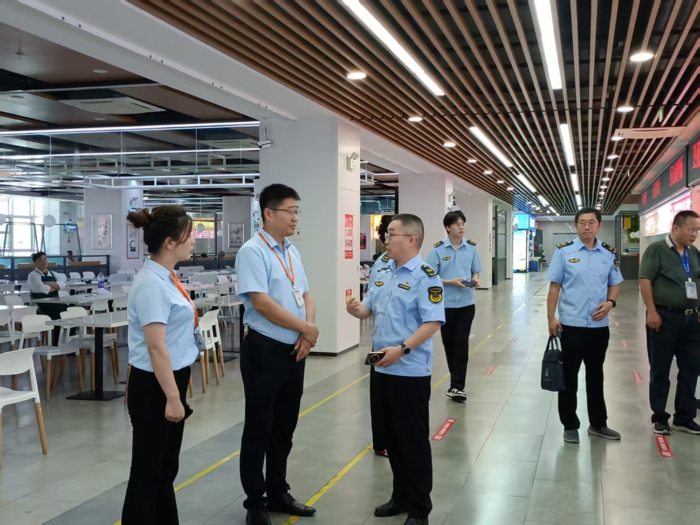 为确保秋季开学师生用餐安全,保障校园生活秩序。9月2日下午,高淳区市场监督管理局食品监管科科长孔春才与开发区分局局长凌晓东带队,对学校食堂食品安全进行了专项检查。后勤处副处长孙永玲、干事周涛及食堂现场负责人陪同检查。