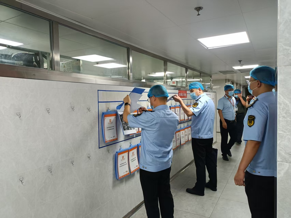 检查组深入食堂前厅与后场,依次对粗加工间、烹饪间、备餐间、洗消间、保洁间以及主副食品原料库等区域进行了全面检查,并对食品供货厂家开展了源头追溯核查。