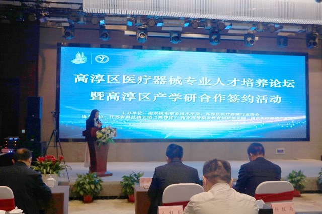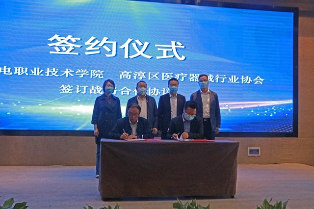 签约仪式上,学校党委书记、院长周庆礼与高淳医疗器械行业协会理事长江文养共同签署了校会战略合作协议。校会双方本着优势互补、共同发展的宗旨,建立规范的工作机制,在人才培养、员工培训、课程开发、技术服务、学术交流等领域加强合作,促进高淳区医疗器械行业产业高质量发展。