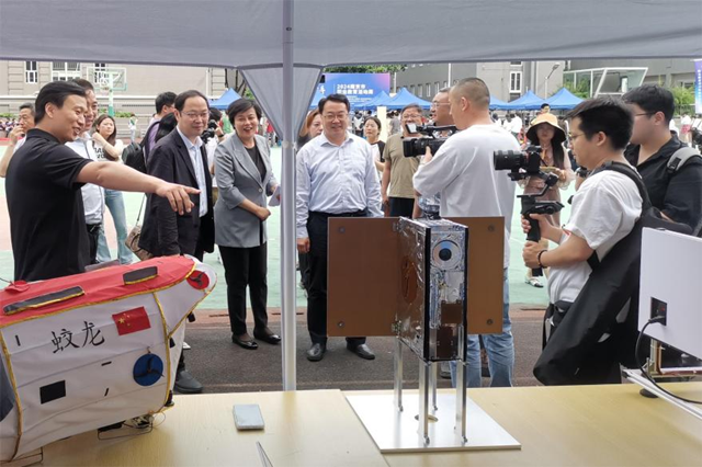 启动仪式结束后,与会代表共同参观了“智改数转”职业技能教学场景展示、技能传承中华优秀传统文化展示及全市职业学校学生社团活动展演,全市20多所中高职院校,围绕活动主题搭建了各具特色的展区。星空体育·(中国)官方网站带来了“南京号”暨中国青少年科普卫星(八一08星)地面模拟星、“蛟龙”号秦淮花灯以及众多体现了数字化设计与制造的创客作品。