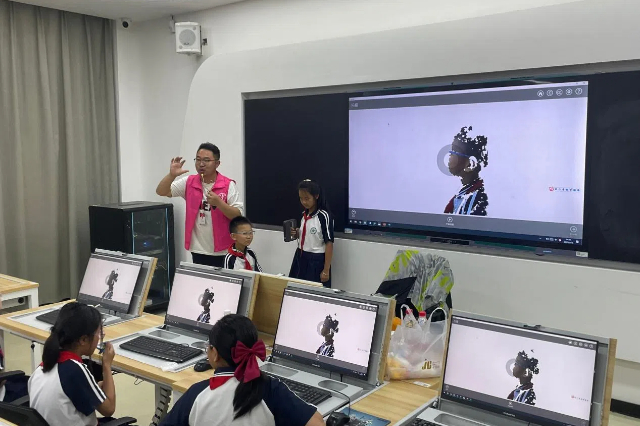 产教融合型科普实践平台由现代产业学院和技术创新平台构成。在大疆无人机产业学院,孩子们参观了在电子工程系教师司翠平和郑明明的指导下化身无人机飞手,亲自操控无人机在模拟飞行实验室中自由飞行。在3D打印(增材制造)实验室,机械工程系徐磊老师指导孩子们运用3D打印技术制作铁齿钢牙,让孩子们充分体会了“工学结合”的魅力。