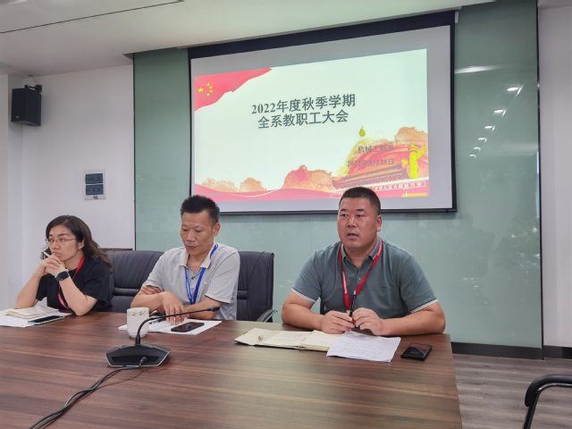 8月25日下午,我系在育德楼303会议室召开了2022-2023学年新学期第一次全体教工会议,总结上学年所取得的成绩、安排部署新学期各项工作。会议由系主任范世祥主持,分管院长孔德丽、机械工程系党支部书记李杰、副主任黄晓萍和全体教职工参加了本次会议。