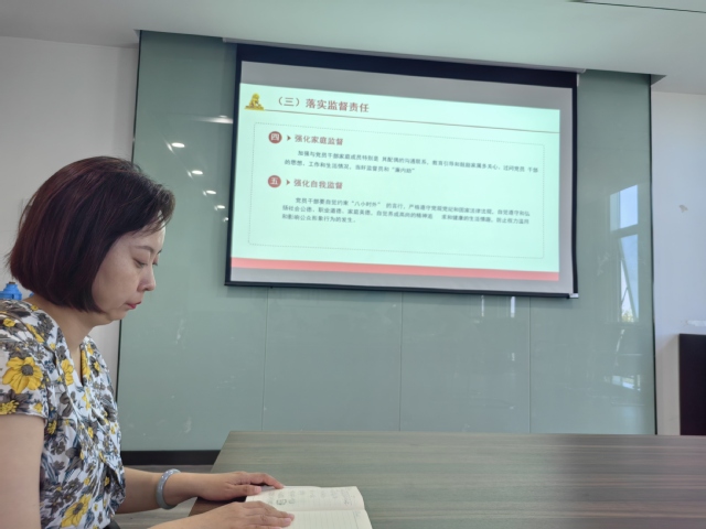 2023年6月27日,机械工程系全体党员在育德楼303集中学习《星空体育·(中国)官方网站关于加强党员干部“八小时外”监督管理实施办法(试行)》,党支部副书记李杰领读学习该文件精神。