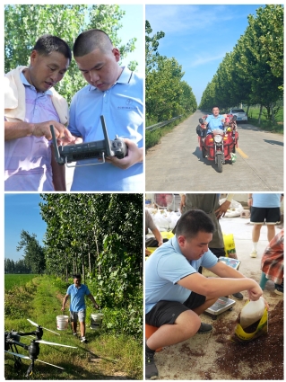 调研期间,“锄禾”大学生社会实践团成员发放100份项目调查问卷,同农户们沟通交流,并深入田间地头,学习无人机喷洒施肥技术。
