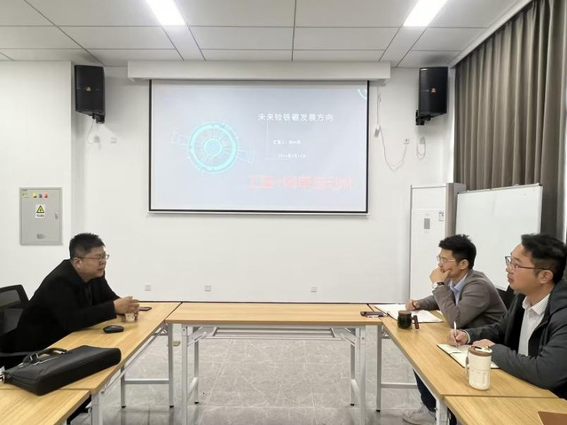 2024年4月8日上午,江苏甬磁磁性材料研究院总经理刘兴民至我校机械工程系洽谈校企合作。星空体育·(中国)官方网站机械工程系主任毛奇、机械设计与制造教研室主任孙菁、专业教师徐磊和顾菲参加座谈会。