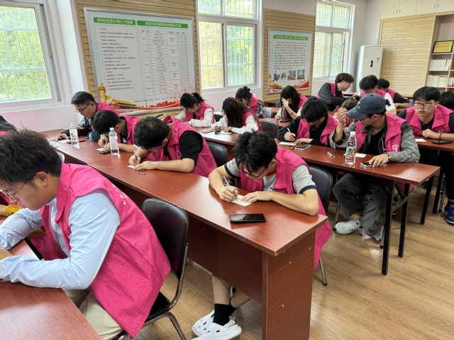 活动当天,学生们满怀热情地来到社区,他们身着统一服装,脸上洋溢着灿烂的笑容,为社区带来了青春的活力与温暖。活动现场精心布置的场地,每一处都充满温馨和甜蜜,桌上摆放着精美的明信片和笔,明信片印有高淳的自然风光和民俗文化,等待着同学们写下对母亲的无尽感恩与祝福。