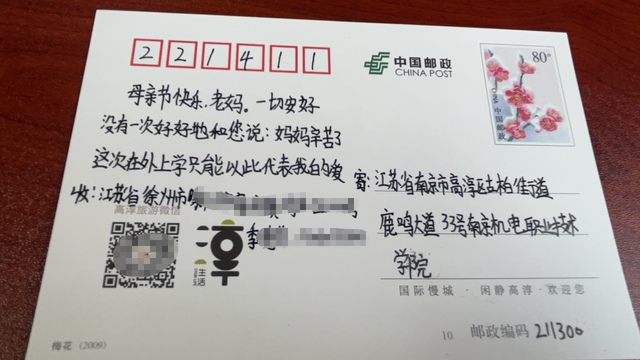 同学们认真地在明信片上倾诉着对母亲的爱与感激。一时间,现场只听见笔尖在纸上沙沙作响,那是一份份深情在流淌。在书写的过程中,许多同学回忆起与母亲相处的点点滴滴,不禁热泪盈眶。同学们纷纷表示,平时因为在外地读书,跟母亲聚少离多,像母亲节这样重要的节日没办法陪伴在妈妈身边,很少有机会这样静下心来表达自己的情感,这次活动给了他们一个难得的机会,让他们能够将心中对母亲的爱毫无保留地展现出来。随后,高淳北漪路邮政的工作人员来收取同学们写好的明信片进行投递。