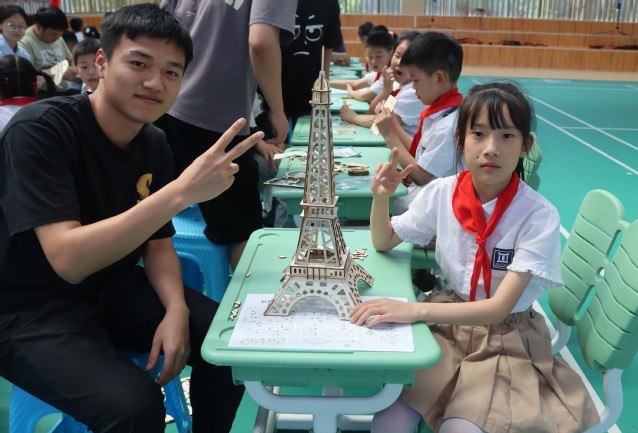 5月28日,机械工程系学生干部走进高淳区宝塔小学,在宝塔小学体育馆与小朋友们共同开展了一次别开生面的创客活动。活动伊始,机械工程系团委书记王晨歌向小学生们介绍了激光切割原理和创客文化的精神。随后,机械工程系学生干部们一对一地指导小学生如何从零开始,利用简单的材料制作出属于自己的创客作品。在这个过程中,小学生们的创意得到了充分的发挥,他们设计了各式各样的模型和小发明,从简单的齿轮结构到复杂的小型机器人,每一个作品都充满了想象力。活动最后,机械工程系学生干部和小朋友们和制作好的创客作品合影留念。