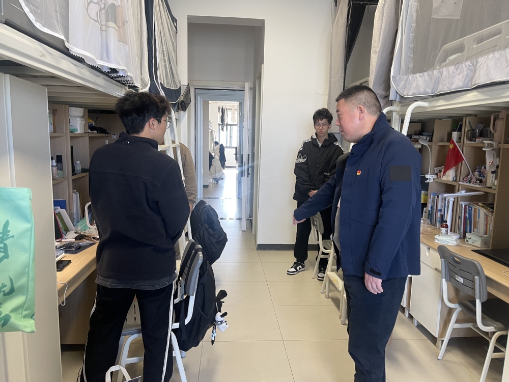 13时,机械工程系主任毛奇、党支部副书记李杰、副主任黄晓萍、各专业负责人、辅导员、专任教师前往博雅苑、静思苑宿舍楼,与宿管阿姨一同走访各层宿舍,针对校园禁烟、宿舍卫生管理、合理规划作息、谨防电信网络诈骗等方面对同学们做好教育提醒。与此同时,针对卫生环境需要进一步加强的宿舍,党员老师们积极发挥先锋模范作用,拿起清洁工具协助同学们完成宿舍卫生整改,经过一个小时的分批走访、逐一清洁,24级宿舍整体面貌焕然一新。