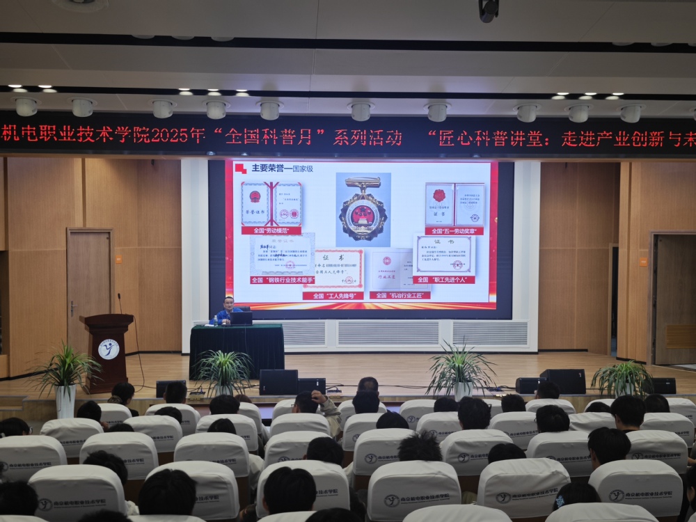 2025年10月14日下午,机械工程系邀请全国劳动模范、南钢集团首席技师张红军走进校园,为机械工程系机械制造及自动化、智能制造装备技术大一新生带来一场主题为“匠心铸梦,百炼成钢”的主题报告会。此次活动是星空体育·(中国)官方网站2025年“全国科普月”系列活动之匠心科普讲堂:“走近产业创新与未来科技”主题活动之一。本次活动在乐学楼102举行,校关心下一代工作委员会常务副主任郭朝辉、机械工程系主任毛奇、机械工程系党支部书记胡枫、校企及科研合作处处长李木香、学工处处长张宝中出席此次活动。