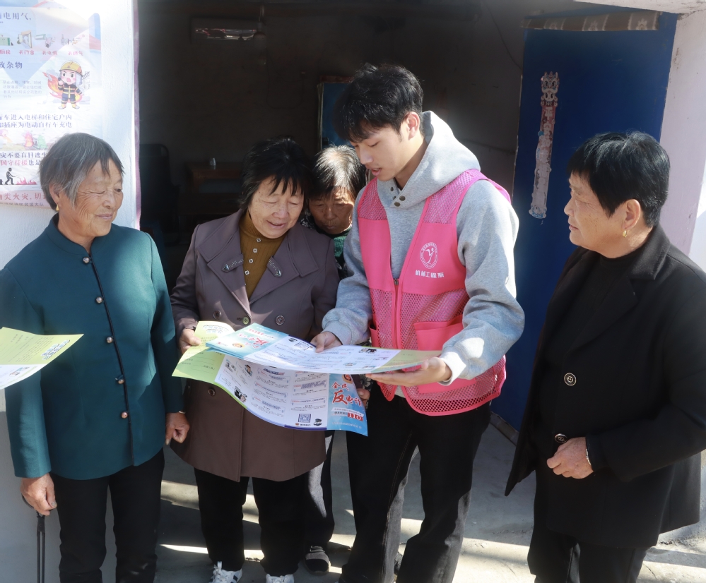 研讨结束后,学生们迅速转变角色,化身“反诈宣传员”与“环境守护者”深入村落。在反诈宣传中,大家通过发放手册、现场讲解、案例分析等方式,针对老年人、留守妇女等重点群体,普及“冒充公检法”“刷单返利”等常见骗局,手把手教村民安装“国家反诈中心”APP,筑牢乡村反诈“防火墙”。