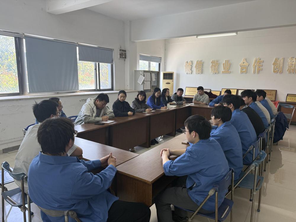 到达南京工艺装备制造股份有限公司后,黄晓萍就订单班的详细情况与在岗同学进行了深入交流,让同学们分享了在岗期间的所获所感,同时也听取了大家的需求并第一时间与单位领导进行反馈。同时,就大三期间岗位创新月记的填写和毕业设计完成的注意事项也给同学们提出了要求。