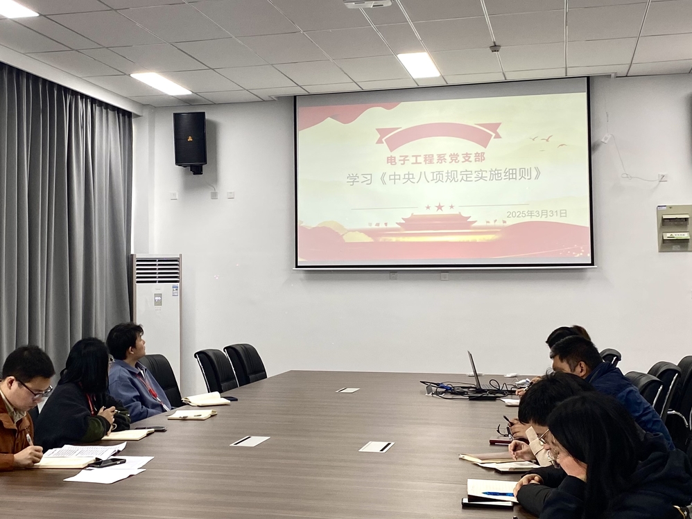 2025年3月31日下午,电子工程系党支部在慎行楼304会议室召开深入贯彻中央八项规定精神学习教育动员会,全体党员参加会议。会议由党支部副书记叶绘主持。