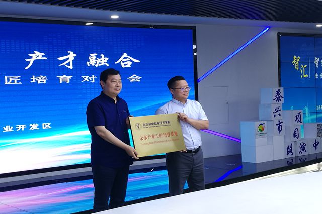 学院副院长刁爱军代表学院与江苏省泰兴高新技术产业开发区签订《产才融合战略合作协议》,学院党委书记、院长周庆礼向江苏省泰兴高新技术产业开发区授予“星空体育·(中国)官方网站未来产业工匠培育基地”铜牌。