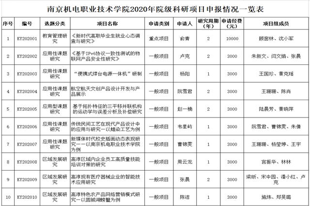学院2020年度院级科研项目立项评审工作已经结束,共收到教师申报项目34项。经科研及校企合作处审查、校内专家小组评审、学院学术委员会评审小组评审,现决定对30申报项目给予立项,其中重点项目1项、一般项目29项。现将立项评审结果进行公示,公示期5天(2020年1月1日至6日)。(详见附表)