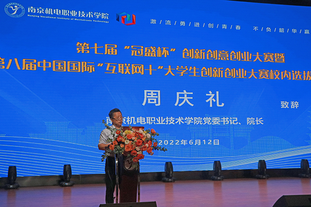 开幕式上,学校党委书记、院长周庆礼致欢迎词。周庆礼介绍“三创大赛”作为学校实施创新创业教育的重要平台,坚持以赛促教、以赛促学、以赛促创,累积了丰硕的成果。他勉励全校师生充分利用“三创大赛”的优质平台,绽放自我、展现风采、服务社会,点亮“塔尖”,让梦想熠熠生辉;打牢“塔基”,让校园百花齐放。南京冠盛汽配有限公司财务总监戢保平表示南京机电学院的“三创大赛”与冠盛公司职工技能大赛的理念不谋而合,希望学校师生积极参与到学校及企业创新创业大赛中。随后,戢保平宣布决赛开始。