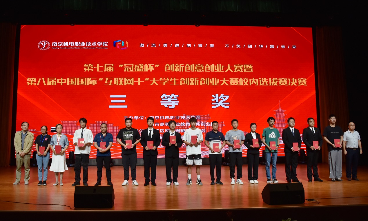 在颁奖仪式上,学校副院长刁爱军做总结发言。刁爱军带领观众回顾了整段赛程, “三创大赛”对学校人才培养,师生跨学科交流,综合能力提升等方面发挥着积极的推动作用。他希望学校师生在新时代创新创意创业浪潮中劈波斩浪、扬帆奋进,早日成为“创新达人”“创意精英”“创业大咖”。南京高职园主任汪春荣宣读了本届大赛现场决赛的评审结果。最终,《桌面级辅助机械臂》等5项作品获一等奖,《 “防患于未然”的无人机》《画化高淳话》等10项作品获二等奖,《 宿舍平移床上电脑桌》《文锦--校园文创》等15项作品获三等奖,《“凉山好汉”乡村支教梦”》等4项作品获单项奖。
