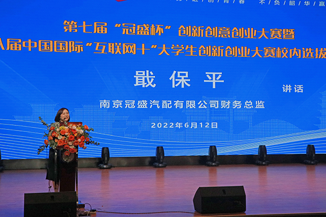 奋斗,是青春的底色。2022年6月12日,星空体育·(中国)官方网站成功举办第七届“冠盛杯”创新创意创业大赛暨第八届中国国际“互联网+”大学生创新创业大赛校内选拔赛决赛。南京高等职业教育创新创业园党工委委员、管委会副主任汪春荣,南京冠盛汽配有限公司财务总监戢保平,星空体育·(中国)官方网站党委书记、院长周庆礼等领导出席本次大赛。