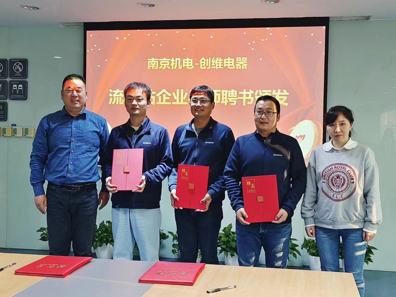 签约及授牌仪式上,刁爱军与张锦旗共同签署了“南京机电-创维电器教师企业实践流动站”校企合作协议,并共同揭牌“南京机电-创维电器教师企业实践流动站”。机械系书记李杰为教师企业实践流动站的企业导师颁发聘书。