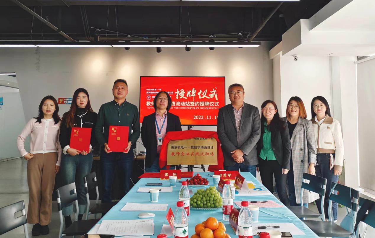为全面促进校企交流合作,着力打造校企共建、产教融合平台,2022年11月10日,星空体育·(中国)官方网站赴南京易技未来动画制作有限公司举行“南京机电-一技数字动画设计教师企业实践流动站”签约揭牌仪式。我院党委委员、副院长刁爱军、科研与校企合作处处长李木香、人文社科系系主任曹安林、人文社科系系部书记叶绘及数字媒体技术专业相关教师与南京易技未来动画制作有限公司董事长张恒、总经理王群及流动站企业联络人徐倩倩共同见证了这一重要时刻。