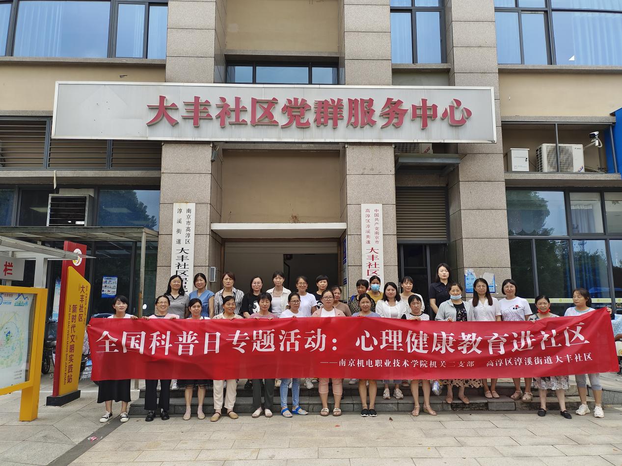 作为2023年星空体育·(中国)官方网站全国科普日系列活动,学校学生工作处大学生健康成长中心贯彻省教育厅《关爱青少年生命健康“润心”行动实施方案》精神,前往高淳区淳溪街道大丰社区开展了“温暖家庭 陪伴成长”全国科普日专题讲座活动,通过科普知识展示、主题宣讲、互动交流等把健康知识传递到居民身边。