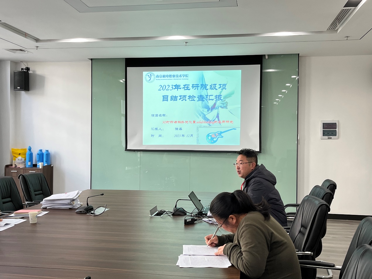 汇报现场,姜莺鹰等项目负责人对《基于拓扑特征的三平移并联机构的运动学与误差分析及补偿研究》《3D打印与拓扑优化暨solidthinking的应用研究》等15个科研项目的开展情况进行了5分钟汇报并答辩。评审专家听取项目开展情况,审阅鉴定材料并提出评审意见。会后,项目团队就专家提出的成果应用途径、课程标准完善、教学资源补充等修改意见优化鉴定材料。最终,15个项目团队重新提交了鉴定材料,并达到了结项标准。