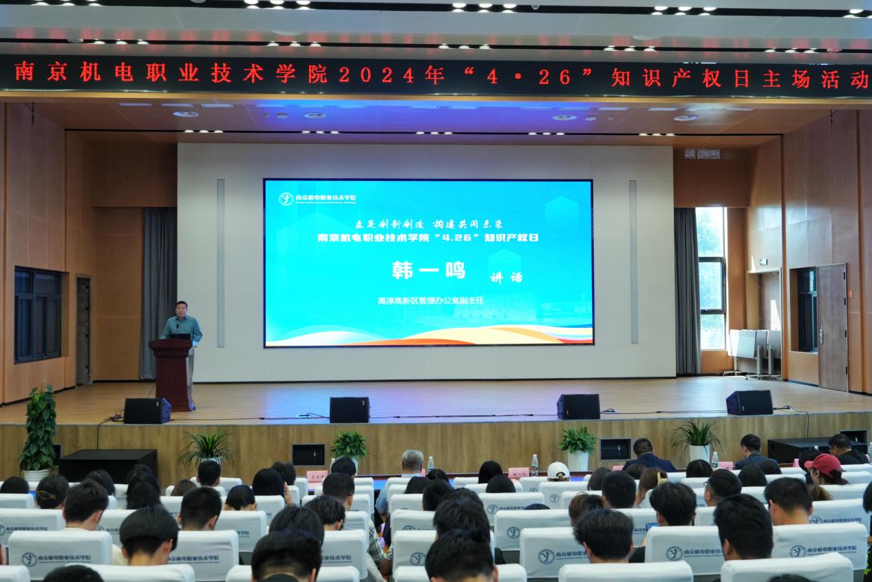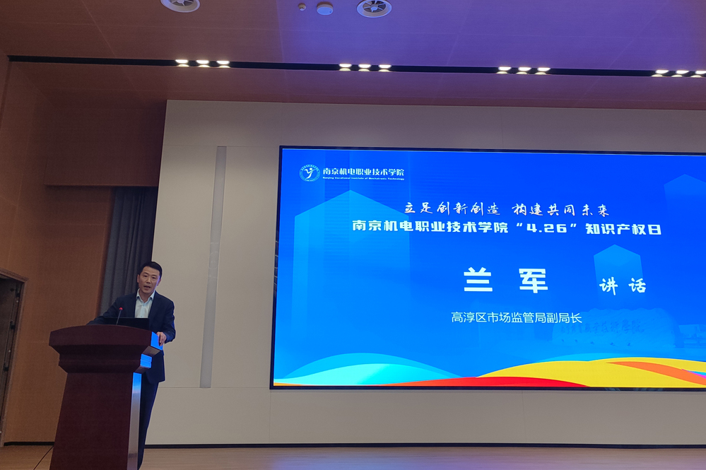 2024年4月26日下午,星空体育·(中国)官方网站成功举办“立足创新创造,构建共同未来”的“4•26知识产权日”主场活动。南京市高淳区市场监管局副局长兰军、高淳高新区管理办公室副主任韩一鸣、南京理工大学知识产权学院院长助理锁福涛,星空体育·(中国)官方网站党委委员、副校长刁爱军、南京九致知识产权代理事务所战略研究部部长张杰等领导出席本次活动,学校系部及职能处室负责人、师生代表参加活动。本次活动由科研及校企合作处李木香处长主持。