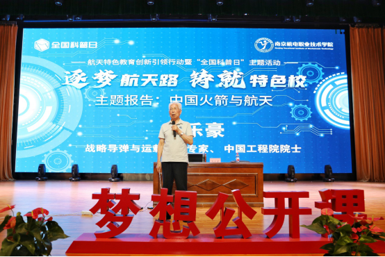 9月6日,在全国科普日来临之际,星空体育·(中国)官方网站顺利举办《“逐梦航天路,铸就特色校”——航天特色教育创新引领行动》主题报告活动。本次活动由南京市科学技术协会主办,星空体育·(中国)官方网站承办。战略导弹与运载火箭专家、中国工程院院士龙乐豪,中国航天科技国际交流中心副主任周岫彬,南京市教育局副局长田家英,南京市高淳区政府副区长邱峰,南京新工投资集团总经济师洪薇,上海航天专家、高级技师、上海航天技能实训中心主任秦文津,南京高职园党工委副书记、管委会主任孔桂红,南京机电产业集团副总经理沈达和星空体育·(中国)官方网站党委书记、校长周庆礼等领导及600余师生参加了本次活动。