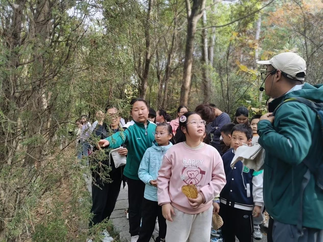 参与活动的教职工家庭在科普讲解员的带领下,开始了自然探索之旅。科普讲解员不仅详细介绍了游子山丰富的植被资源,还分享了关于当地生态保护的知识和趣闻,让孩子们在游玩的同时,也能学习到宝贵的自然知识。