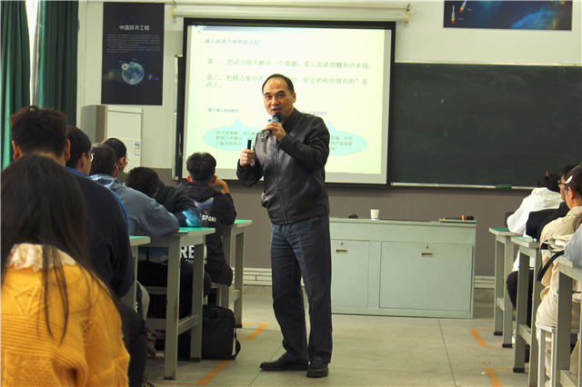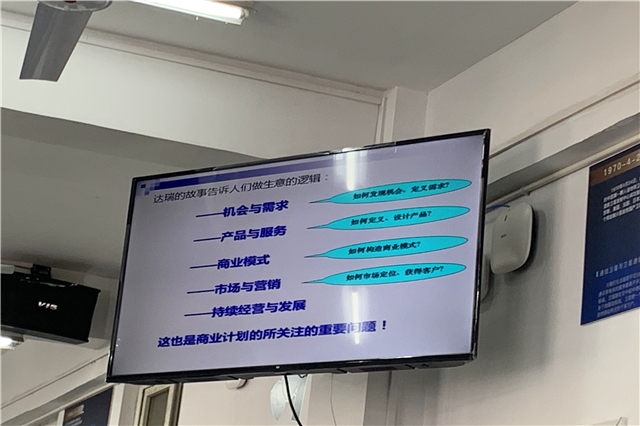 讲座中,周主任为同学们深度剖析了经典的商业案例,并把企业家创业的逻辑总结为机会与需求、产品与服务、商业模式、市场与营销及持续经营与发展等五个方面。他说,企业家需要考虑如何发现机会并定义需求、如何定义并设计产品、如何构造适当的商业模式、如何市场定位并获得客户以及如何实现长远发展。幽默风趣的语言、理论与方法相结合的授课方式,使全班同学聚精会神地聆听了周主任的讲解。周主任表示,同学们将在下一阶段课程的模拟环境中体验创业的过程。