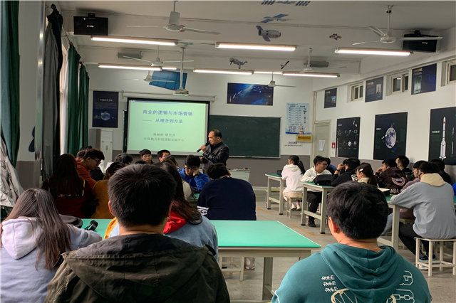 10月27日上午,中国航天科技国际交流中心副主任周岫彬在蓝岛航天创客实验室为我院创客带来《商业的逻辑与市场营销》专题讲座。周主任为同学们精彩讲述了创业过程中企业家的商业逻辑。