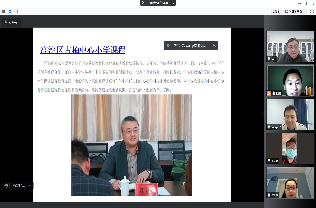 会上,杨阳老师从大国工匠课程、创客项目、专利申请、竞赛获奖、创客活动和创业企业孵化几方面对第五期“双创教育试点班”预期成果的达成做了详细的分析。结合我校与高淳区古柏中心小学的创客教育支持,杨阳老师提出由第五期“双创先锋班”学生指导该校小学生科技类课程。接着,黄克瑶老师提出在与“双创教育试点班”人才培养方案的对标过程中发现,因疫情影响,原定施行校外知名专家和校内创客导师共同授课的形式暂时无法开展,理论学习与实践获得相结合的授课方式开展较有难度。教研室教师对此进行讨论,最后王国珍主任结合疫情防控情况对“双创教育试点班”的课程安排进行调整,提出邀请王曙群先生以线上课程的形式开展一期大国工匠课程,与第五期“双创教育试点班”学生线上见面;开展第五期“双创教育试点班”线上班会工作,加强对学生近期学习状态的了解,宣传第七届“冠盛杯”创新创意创业大赛,鼓励双创班每位同学都参加本次比赛,并借助本次大赛为平台,激发学生的创新潜质和创新意识,促进学生的专利申请。