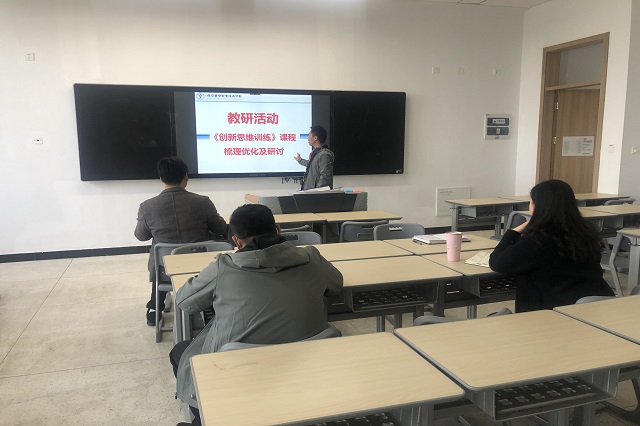 3月28日,蓝岛创客空间创新教研室在思学楼101开展了《创新思维训练》课程梳理优化及研讨教研活动。本次活动由蓝岛创客空间创新教研室杨阳老师主持,蓝岛创客空间主任王国珍以及创新教研室教师候俊、朱妍焘参与了本次活动。