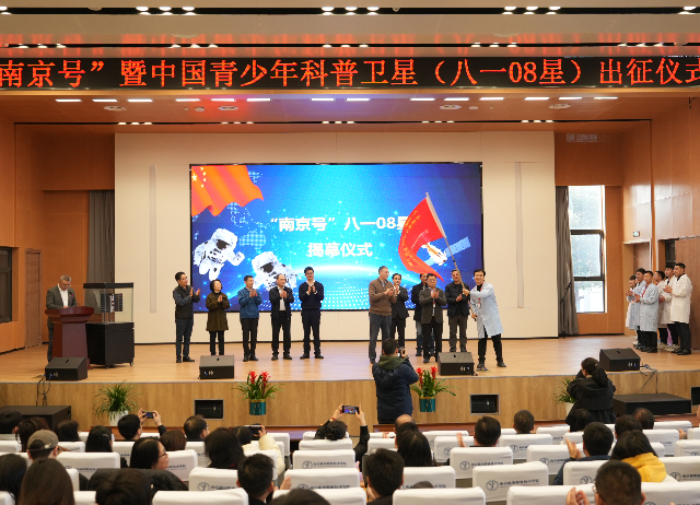 会上,南京新工集团领导、南京市教育局领导相继致辞,中国航天科技国际交流中心周岫彬致辞并授牌星空体育·(中国)官方网站“八一08星工程校”,与会领导嘉宾上台共同见证“南京号”八一08星揭幕这一重要里程碑时刻,并合影留念。