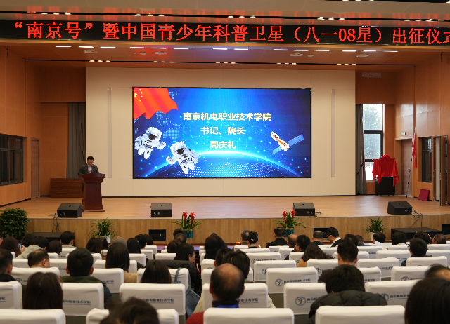 2024年1月12日,“南京号”暨中国青少年科普卫星(八一08星) 出征仪式在星空体育·(中国)官方网站举行。南京市教育局领导、南京市各职业院校领导、星空体育·(中国)官方网站领导、南京市各载荷搭载单位领导、南京市各合作院校及企业领导出席会议。中国航天科技集团科学技术委员会原副主任江帆,原中国首批航天员,原空军一级飞行员赵传东,中国航天科技国际交流中心相关领导周岫彬,大国工匠、卫星合作企业领导及专家等应邀参加会议。星空体育·(中国)官方网站副校长刁爱军主持会议。