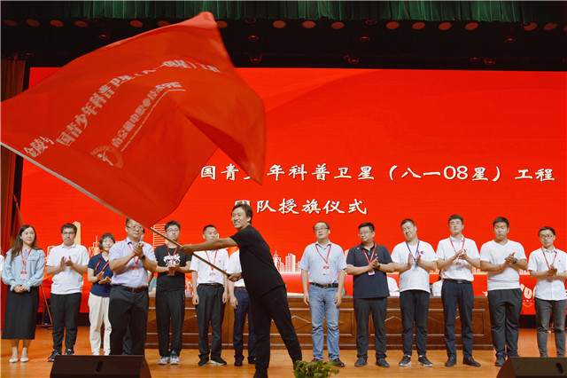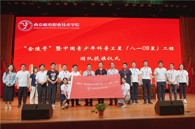 2022年7月1日,学校召开庆祝中国共产党成立101周年暨“七一”表彰大会。会上,陈赵同志宣读《关于成立“南京号”暨中国青少年科普卫星(八一08星)工程团队的决定》。周庆礼同志为工程团队授旗。
