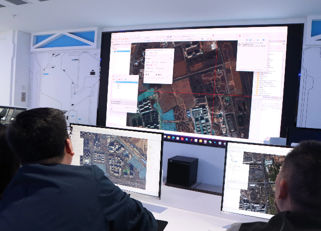 随后,彭芝珏在卫星测控大厅开展卫星遥感数据应用实践操作环节。通过长光卫星公司开发的协同编译软件,让师生在线共同操作,对AI识别的地物类型进行人工质检。