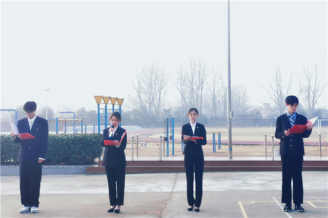 12月28日清晨,人文社科系升旗仪式暨团总支素养公开课在蓝岛创客广场举行。人文社科系全体党员教职工、全系在校学生参加升旗仪式。升旗仪式由人文社科系团总支孙梦瑶同学主持。