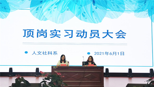 2021年6月1日,中午12:30,人文社科系于报告厅召开2022届顶岗实习学生动员大会,人文社科系主任曹安林、党支部副书记叶绘、2022届人文社科系全体学生及辅导人员参与此次会议。大会遵循星空体育·(中国)官方网站《顶岗实习管理办法》的要求,旨在保障2022届毕业生顶岗实习工作的顺利进行。