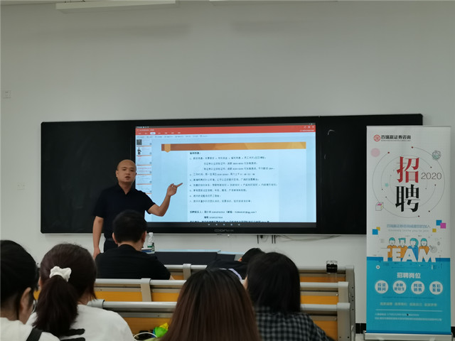 2021年6月10日,江苏百瑞赢证券咨询有限公司等四家企业于下午13:30在思学楼301、303、304与博学楼311开展了宣讲会,各家企业在宣讲会结束后进行单独的交流与招聘。