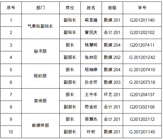 为提高学生干部选拔的透明度,现对拟任学生干部进行公示。